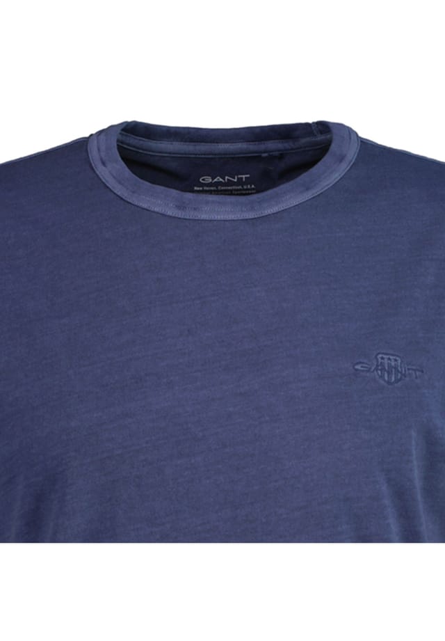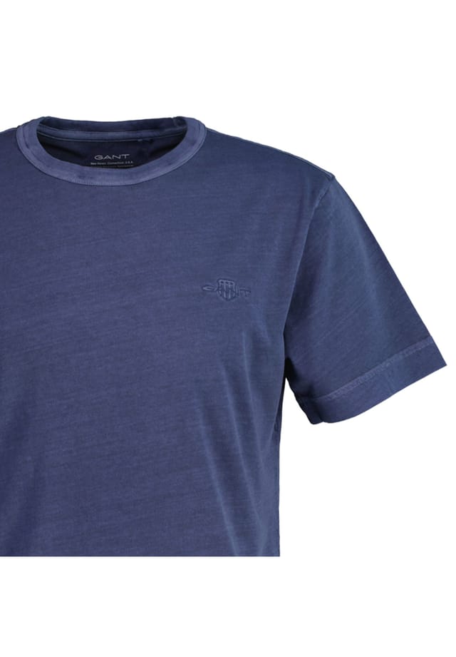 Футболка Gant синего цвета из 100% хлопка с эффектом выцветшей ткани. Короткий рукав, круглый вырез.