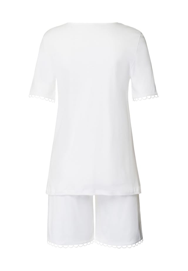 Описание товара: Этот комплект, состоящий из шорт и рубашки с короткими рукавами и круглым вырезом, одновременно прост и игрив, так как он изготовлен из мягкого хлопка и украшен нежной вышитой лентой в модном банте на манжетах и штанинах. Особенности : Комплект, состоящий из рубашки с короткими рукавами и шорт. Изготовлен из мягкого хлопкового интерлока. Удобен в носке. Информация о размере: Изделие идет размер в размер. Покрой: Прямой. Длина: Короткий. Вырез: Круглый вырез. Длина рукава: Короткий рукав. Передние, задние и внутренние карманы: Без кармана. Обозначение длины топов: Обычная длина.