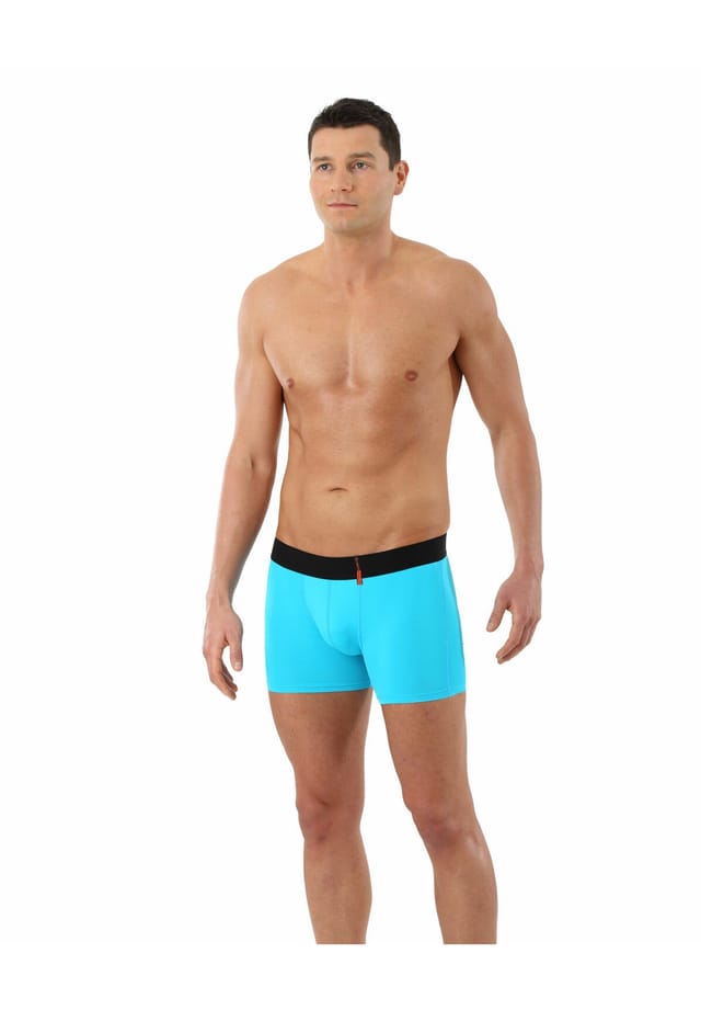 Особенности (маркеры): Облегающие мужские ретро-шорты насыщенного бирюзового цвета из легкой как перышко микрофибры