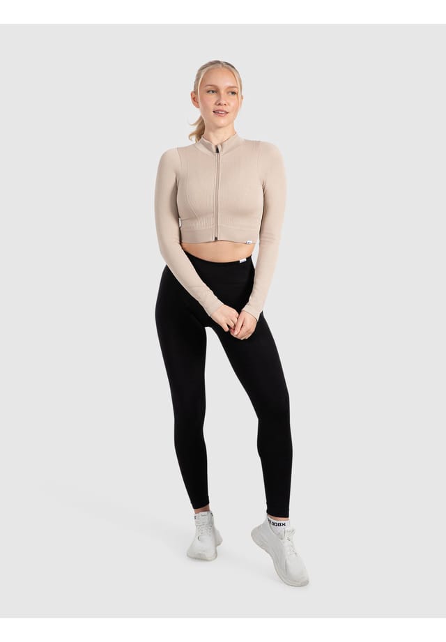 Описание товара: Наша укороченная тренировочная куртка немного маломерит. Пожалуйста, заказывайте на размер больше вашего обычного размера. Мягкий ребристый материал с эластичностью идеально адаптируется к форме тела и обеспечивает максимальный комфорт — как во время тренировки, так и в повседневной жизни. Высокий воротник с молнией по всей длине придает спортивный вид, а облегающий крой подчеркивает современный силуэт. Благодаря бесшовной отделке верх не только особенно удобен в носке, но и универсален — с леггинсами с высокой талией, джоггерами или джинсами. Наш тонкий логотип Smilodox изящно завершает образ.
