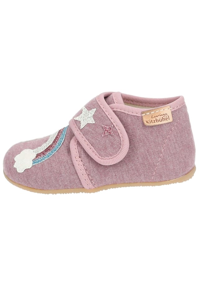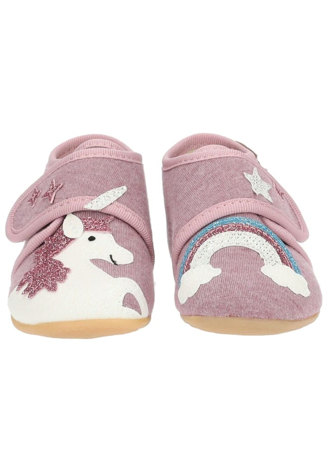 Описание товара: Эти тапочки на липучке от Living Kitzbühel изготовлены из текстиля и украшены милыми радужными мотивами единорогов. Они оснащены практичным ремешком на липучке для индивидуальной регулировки ширины. Гибкая и 100% нескользящая резиновая подошва также практична, позволяя вашему малышу комфортно катиться и обеспечивая надежное сцепление.