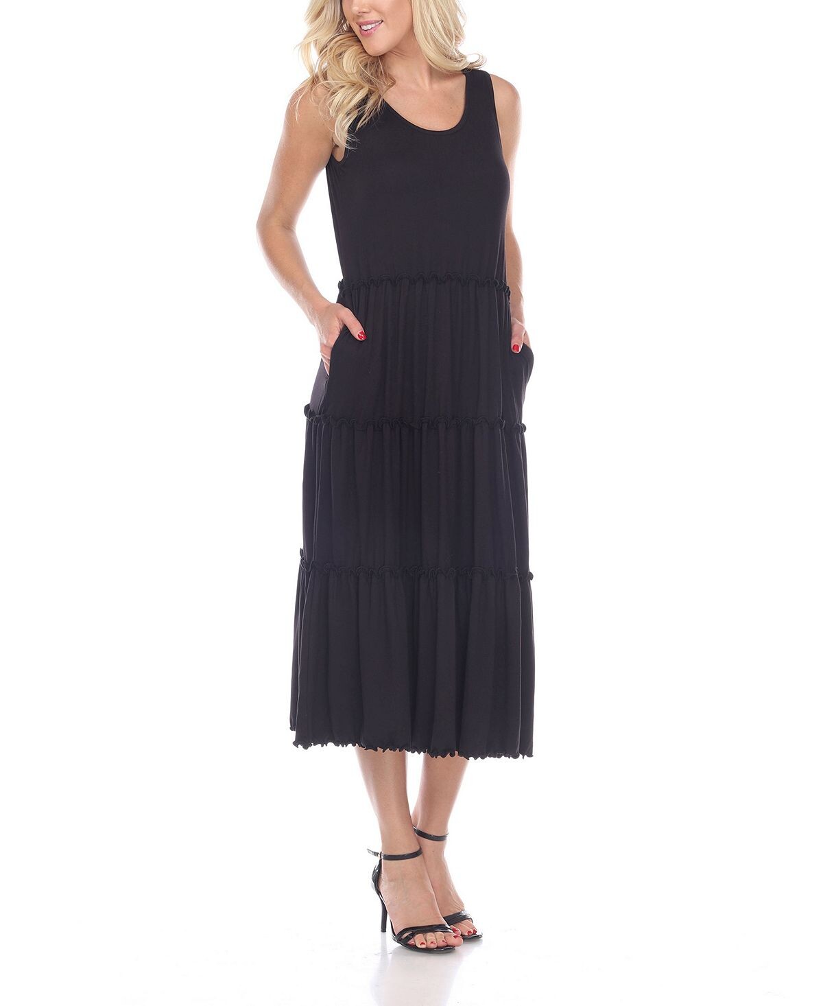 Женское многоярусное платье миди с овальным вырезом White Mark, черный
