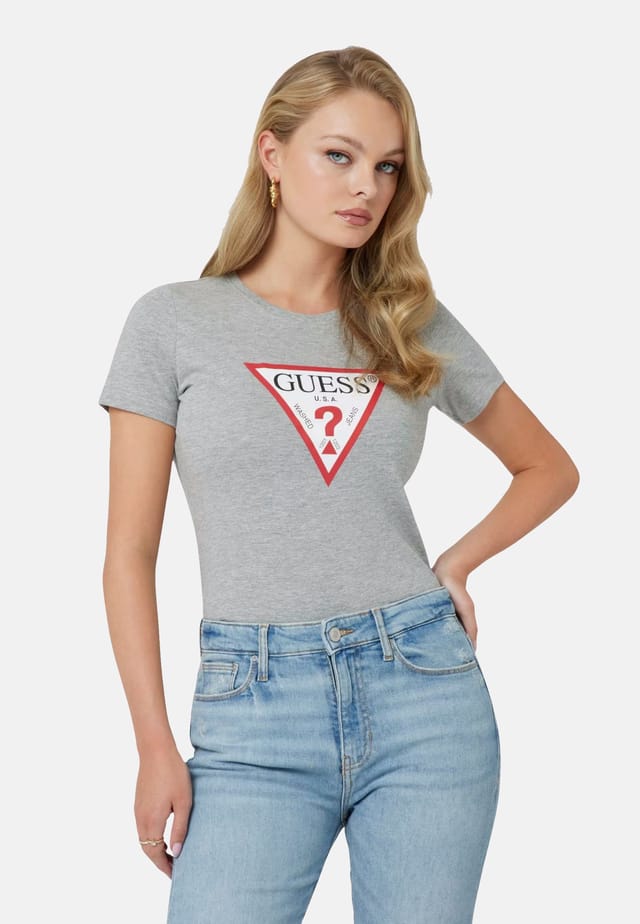 Описание товара: Женская футболка 'ORIGINAL' от Guess впечатляет классическим круглым вырезом и короткими рукавами. Как базовая вещь, ее можно комбинировать разными способами, и она действительно привлекает внимание благодаря напечатанной этикетке спереди. Эластичная ткань обеспечивает удобную посадку. Благодаря облегающему крою она стильно подчеркивает фигуру. Незаменимая вещь для любого гардероба.