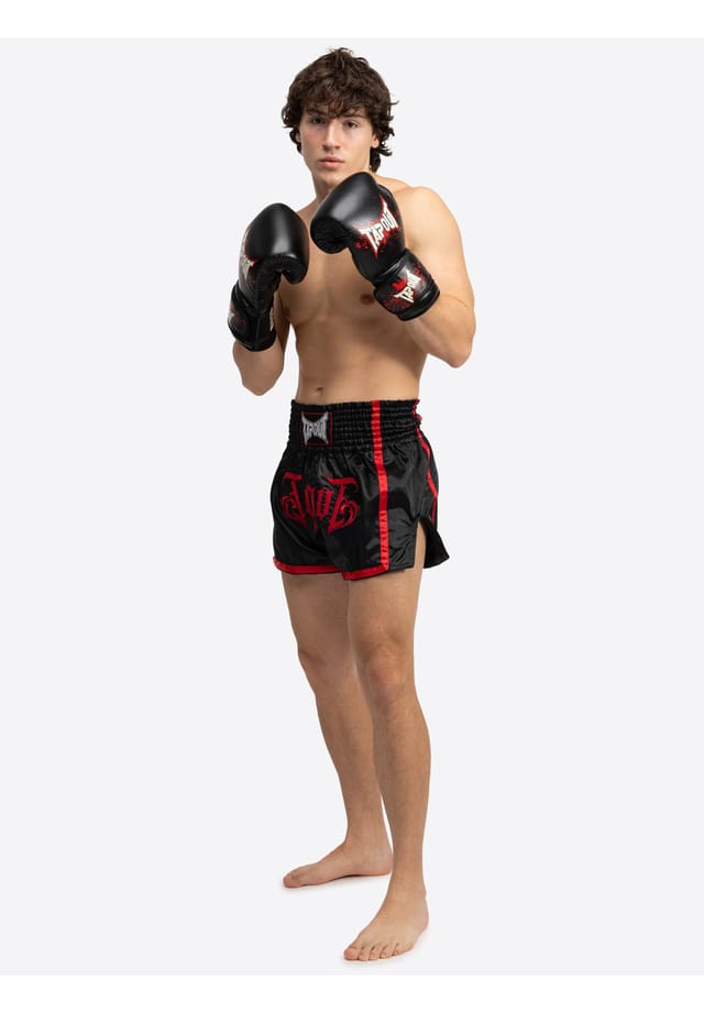 Описание товара: Эти стильные брюки для тайского бокса от TAPOUT изготовлены из атласа и идеально подходят для тренировок и соревнований. Суперэластичный пояс гарантирует идеальную поддержку, а боковые разрезы на штанинах обеспечивают максимальную свободу движений. Отличительными особенностями являются контрастные полосы по бокам, тканый лейбл TAPOUT и высококачественная вышивка спереди. Можно стирать в стиральной машине при 30 °C. Специальные характеристики : брюки для тайского бокса от TAPOUT. Классический крой. Изготовлены из 100% полиэстерового атласа. Идеальная посадка благодаря эластичному поясу. Великолепные детали с логотипом. Вид спорта: бокс. Длина брюк: шорты.