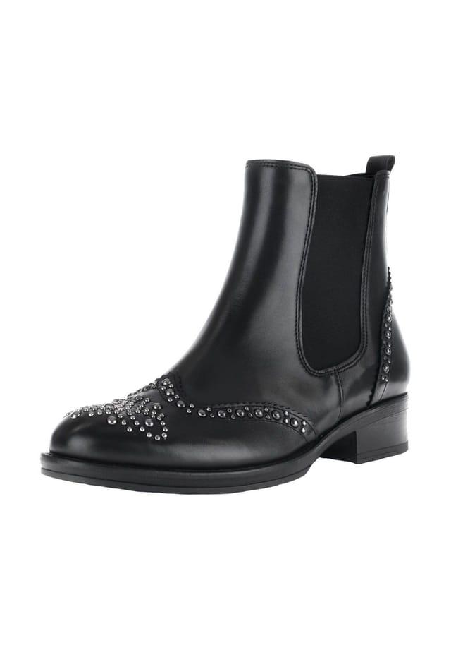 Описание товара: Этим ботильоном Gabor демонстрирует, как элегантный дизайн и превосходный комфорт могут прекрасно сочетаться. Эластичные вставки по бокам позволяют легко надевать и снимать их, а также обеспечивают идеальную посадку. Стельку можно снять при необходимости. Дополнительная молния подчеркивает комфорт. Современная отделка заклепками — абсолютная приманка для глаз.