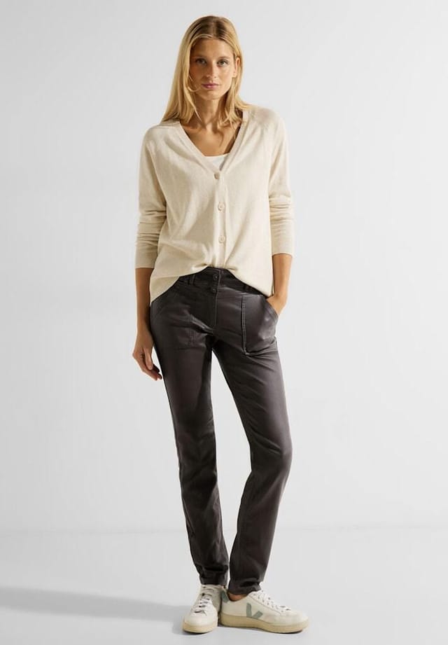 Описание товара: женские брюки Cecil. Стильные и модные! Эти облегающие брюки в стиле Toronto от CECIL со средней талией и узкими штанинами — настоящее модное заявление. Сочетание облегающего кроя и модного покрытия придает этим брюкам современный и изысканный вид. Носите их с шикарным топом и высокими каблуками для стильного образа, который привлечет всеобщее внимание. Эти женские брюки Cecil не только модные, но и удобные и долговечные. Изготовленные из высококачественных материалов, таких как вискоза, нейлон и эластан, они обеспечивают идеальную посадку и высокий уровень комфорта. Будь то в офисе, на прогулке или на досуге, эти брюки универсальны и их можно легко сочетать с разными нарядами. В брюках есть практичные карманы для хранения мелких предметов, таких как ключи или помада. Облегающий крой и средняя талия создают привлекательный силуэт и элегантно подчеркивают вашу фигуру. Женские брюки Cecil доступны в различных размерах и идеально адаптируются к вашей фигуре. Обратите внимание, что брюки доступны в разных цветах, чтобы подчеркнуть ваш индивидуальный стиль. Закажите женские брюки Cecil прямо сейчас и оцените идеальное сочетание стиля, комфорта и качества.