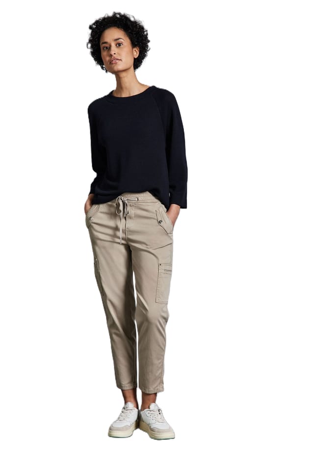 Описание товара: Эти женские брюки-карго в стиле Bonny от Street One впечатляют модными деталями и высоким уровнем комфорта. Средняя талия и узкие штанины, а также эластичный пояс со шнурком обеспечивают удобную посадку, а накладные карманы придают брюкам типичный карго-образный вид. Особенности : практичные карманы обеспечивают идеальное место для хранения мелких предметов Повседневный, свободный крой в модном карго-дизайне для непринужденной носки Повседневный дизайн допускает индивидуальные варианты комбинирования Застежка: шнурок Стиль: повседневный Передние, задние и внутренние карманы: 2 боковых кармана, 2 кармана на штанинах, 2 задних кармана Талия: средняя Длина брюк: брюки 7/8