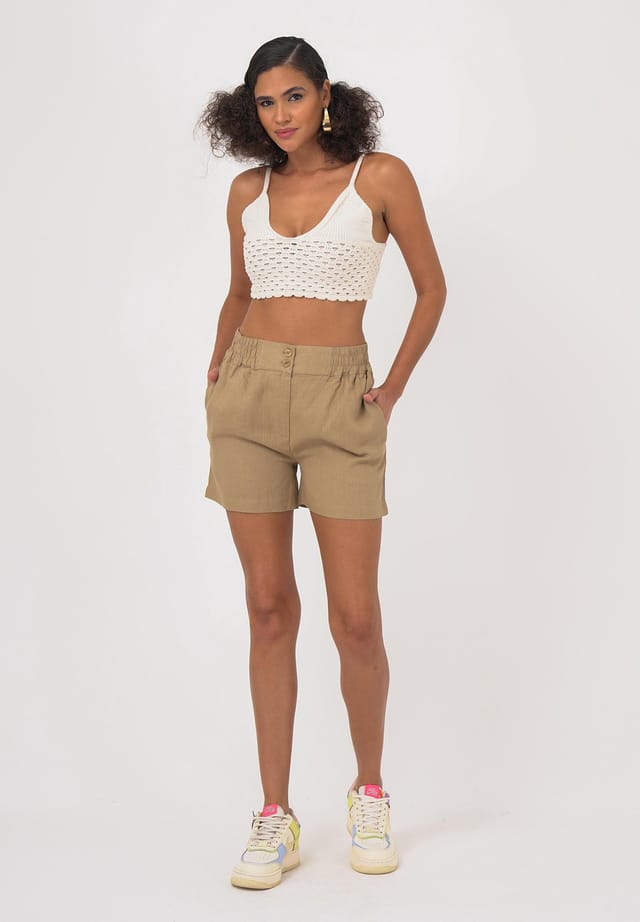 Описание товара: Эти шорты — стильный и удобный вариант для теплых дней. Благодаря обычному крою и классическим боковым и задним карманам они практичны и модны. Застежка на пуговицы и молнию позволяет легко надевать и снимать их, а эластичный пояс сзади обеспечивает дополнительный комфорт и идеальную посадку. Высококачественный льняной материал дышащий и идеально подходит для лета. Простой однотонный дизайн делает эти шорты универсальной вещью, которую легко комбинировать. Идеально подходит для различных видов отдыха или расслабленных дней.