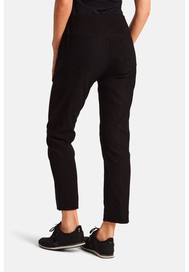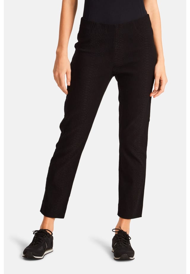 Описание товара: Брюки длиной до щиколотки со змеиным принтом из эластичного материала. Мягкий и широкий эластичный пояс имеет детали, как у обычных брюк, с карманами и ширинкой, обозначенной швами. Длина внутренней части штанины составляет 70 см. Модель на фотографии имеет рост 178 см и носит размер small. Наши размеры plus size имеют обычную посадку, в то время как наши размеры small немного более свободные. Материал: 79% вискозы, 19% нейлона, 2% эластана. Инструкции по стирке: деликатная стирка при 30°C, не выжимать и не замачивать, растягивать во влажном состоянии, не использовать отбеливатель, не сушить в стиральной машине и гладить при низкой температуре.