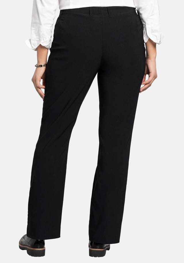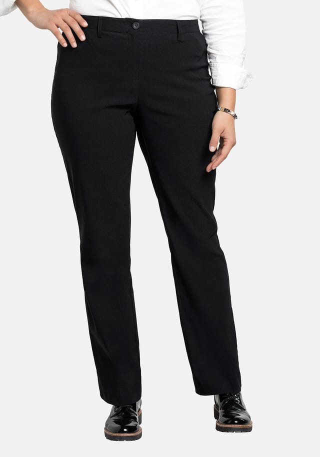 Описание товара: Эти брюки Bengaline от sheego удивительно универсальны и подойдут для любого образа и любого случая. Крой bootcut удобно сидит на бедре и расширяется от колена вниз. Крой без карманов означает, что брюки не громоздкие, а узкий пояс обеспечивает аккуратный вид. Они выполнены из сохраняющей форму, не мнется и простой в уходе ткани. В размере 44 ширина подола составляет 51 см. Особенности : С узким поясом Форма штанины bootcut Без карманов Ткань Bengaline с высоким содержанием вискозы и эластичностью Не мнется, сохраняющая форму и простая в уходе ткань Застежка: молния Стиль: деловой Покрой: Bootcut / клеш Расположение застежки: спереди Линия талии: средняя Длина брюк: длинные брюки