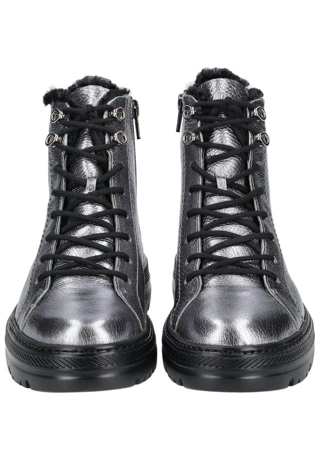 Описание товара: С этими стильными ботильонами на шнуровке от Paul Green вы будете модными в холодное время года. Сделанные из высококачественной кожи с металлическим блеском, эти туфли сразу же впечатляют своим простым внешним видом. Шнуровка и дополнительная молния гарантируют идеальную поддержку и оптимальную посадку. Мягкая внутренняя подкладка сохраняет ноги в тепле даже при низких температурах.