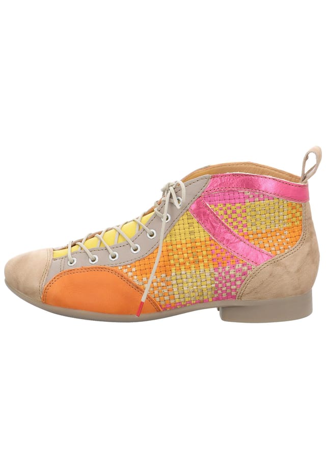 Описание товара: Великолепные туфли на шнуровке из высококачественной кожи наппа от Think! Красочный дизайн обуви действительно привлекает внимание. Внутренний материал и съемная кожаная стелька — настоящее удовольствие для ваших ног, окутывая их приятной мягкостью.