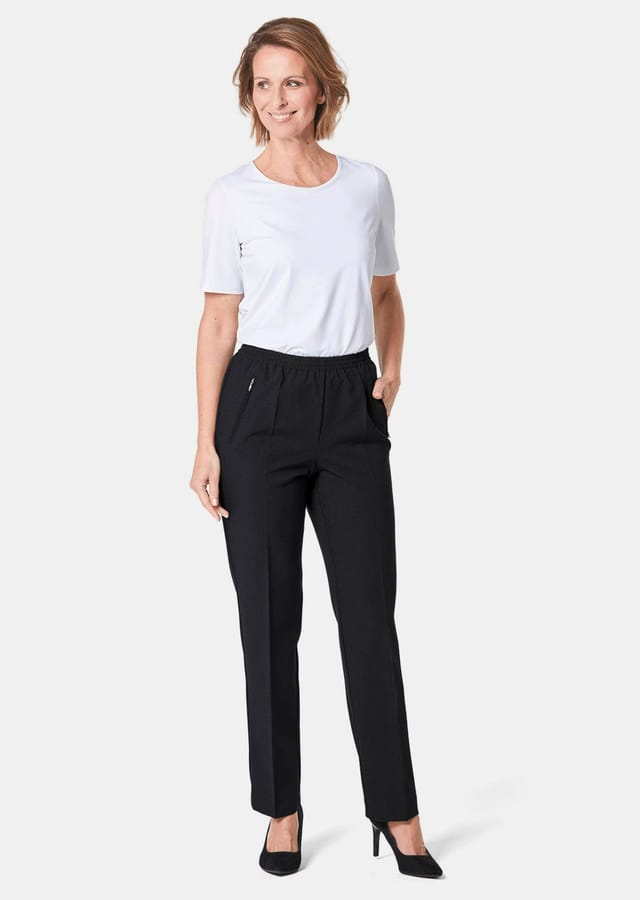 Описание товара: Брюки для путешествий LOUISA pull-on идеально подходят для любой поездки или длительного сидения, что делает их обязательной вещью в вашем гардеробе. Благодаря эластичному поясу по всему периметру ничто не сдавливает и не пережимает ваш живот — материал, удобный для чемодана, остается практически без складок и за ним удивительно легко ухаживать. С элегантной складкой для ухоженного вида. Ширина подола около 42 см. Ширина прямого брючины.