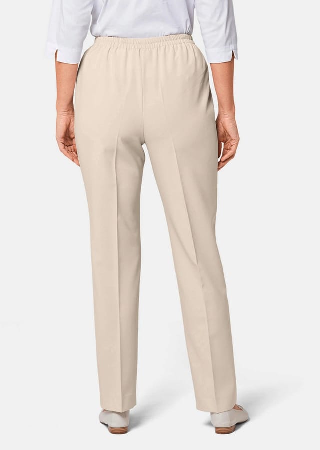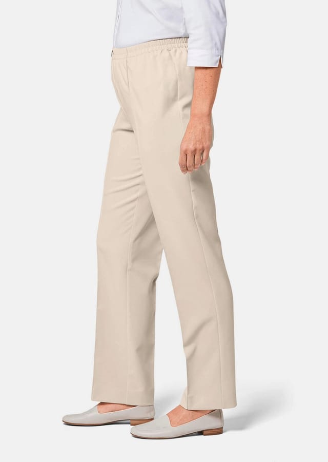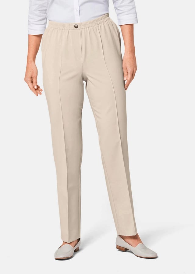 Описание товара: Двойная упаковка брюк из ткани, не требующей особого ухода. Выберите свой любимый цвет и получите вторую пару черного цвета. Эластичный пояс обеспечивает превосходный комфорт. Классическая форма с эластичной прошитой окантовкой и ложной молнией идеально дополняет безупречный общий вид обеих моделей. Без карманов. Ширина прямых штанин. Ширина подола около 42 см.