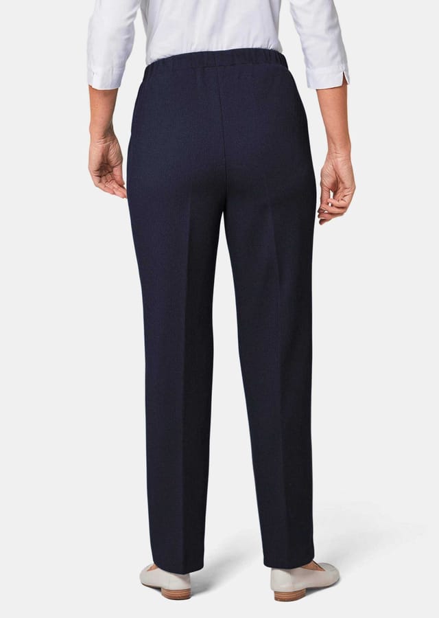 Описание товара: Брюки в рубчик: балуйте себя каждый день комфортным качеством. Прочная трикотажная ткань мягкая, не мнется и сохраняет форму. Даже если вам нужно постирать брюки, они готовы к носке в кратчайшие сроки благодаря их быстросохнущим свойствам. Передняя прошитая окантовка особенно подчеркивает фигуру. С удобным затягивающимся поясом — просто наденьте ее и наслаждайтесь максимальным комфортом при ношении. Ширина прямых штанин. Ширина подола около 42 см.