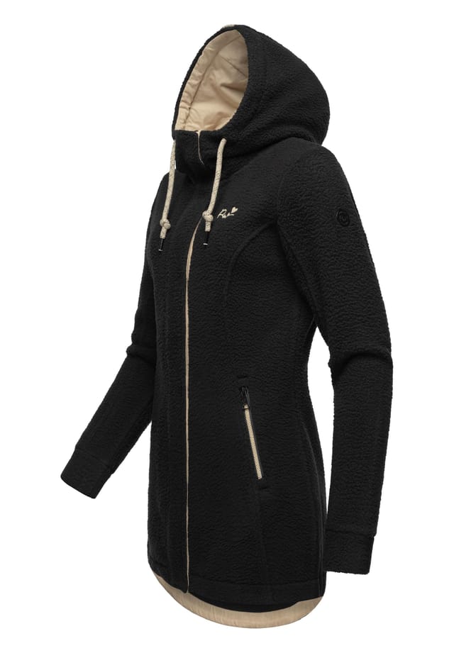Описание товара: ВНЕШНИЙ ВИД: Это длинное пальто-свитер вне времени и универсально. Пушистый вид тедди добавит непринужденности любому наряду и идеально сочетается с джинсами или леггинсами. МАТЕРИАЛ: Уютный, мягкий материал не только делает это пальто приятным на ощупь, но и простым в уходе. Материал также обеспечивает прочность и сохранение формы, что делает его идеальным для переходных периодов и прохладных летних вечеров. ПОСАДКА: Это длинное плюшевое пальто имеет свободный, длинный покрой, который достигает примерно середины бедра, что делает его удобным для ношения и предлагает привлекательный силуэт. Оснащено практичным капюшоном и регулируемыми шнурками, посадку можно индивидуально регулировать. ДЕТАЛИ: Детализированный дизайн с карманами на молнии для практичного хранения и прочной высоко застегивающейся молнией для гибкости. Черные акценты на воротнике и манжетах рукавов создают стильные контрасты. Эксклюзивно в YOUMODO: флисовый плюшевый плед Ragwear Letti в премиум-версии. Это уютное, мягкое переходное пальто идеально подходит для прохладных дней весной и осенью. Универсальный дизайн и высокое качество изготовления делают его идеальным компаньоном для самых разных случаев. Женское переходное пальто из мягкого флиса Тедди. Длина примерно до середины бедра. Облегающий покрой (сзади длиннее, чем спереди). Мягкий капюшон, регулируемый с помощью шнурков. 2 боковых внешних кармана на молнии. Машинная стирка при 30 °C. Особенности : Материал: 100% полиэстер. Мягкая флисовая куртка Тедди с регулируемым капюшоном. Уютный материал устойчив к ветру и сохраняет тепло. Облегающий покрой до середины бедра. Высокая застежка-молния и высокий воротник. Легко комбинируется и идеально подходит для переходного периода. Стиль: спортивный. Длина рукава: длинные рукава. Длина топа: удлиненный покрой.