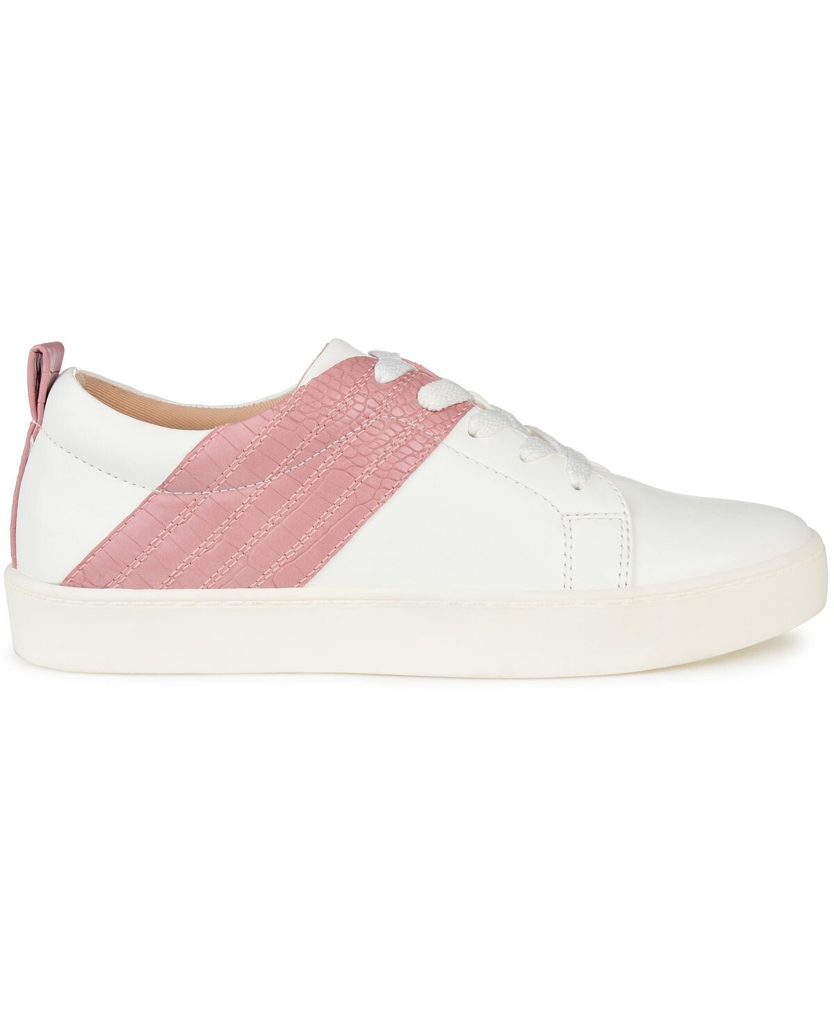 Raaye — это кроссовки с низким вырезом, которые умеют создавать смелые акценты, с трехстрочным акцентом в виде змеиной кожи и язычком в задней части пятки. Эта модель из веганской кожи от Journee Collection имеет застежку на шнуровке, комфортную стельку из пеноматериала толщиной 8 мм и гладкую резиновую подошву.