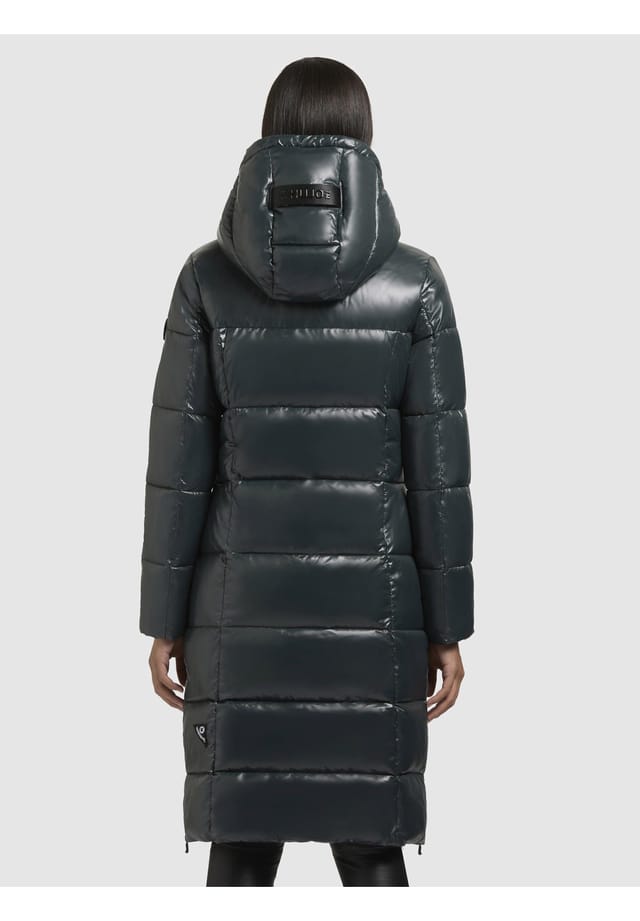 Описание товара: ВНЕШНИЙ ВИД: Это современное стеганое пальто впечатляет своим мерцающим внешним материалом, придавая любому зимнему образу прохладный, модный оттенок. Тонкие контрастные детали дополняют образ, делая его идеальным компаньоном для модных нарядов. МАТЕРИАЛ: Прочная, гладкая поверхность сочетает в себе стиль и функциональность. Водоотталкивающий и ветрозащитный материал надежно защищает от переменчивой погоды осенью и зимой. ПОСАДКА: Приталенный крой стеганого пальто подчеркивает фигуру, не стесняя ее. Пальто длиной примерно до середины бедра прекрасно сохраняет тепло. Боковые молнии обеспечивают полную свободу движений, а регулируемый и съемный капюшон обеспечивает максимальную гибкость. ДЕТАЛИ: Боковые карманы на молнии с флисовой подкладкой и скрытый внутренний карман на молнии предлагают достаточно места для хранения. Высокий воротник с толстой подкладкой прекрасно сохраняет тепло, а клапан на молнии с магнитными кнопками защищает от холодного ветра. Незаменимая вещь для холодного сезона: высококачественные материалы, современные детали и максимальный комфорт делают это пальто незаменимым спутником для женщин, следящих за модой, в любую погоду. Стильное зимнее пальто от khujo. Длина примерно до середины бедра. Приталенный крой. Модный блестящий материал. Контрастные детали. Регулируемый и, при необходимости, съемный капюшон. Боковые разрезы. Водоотталкивающий и ветрозащитный наружный материал. Машинная стирка при 30°C. Особенности : Внешний материал: 100% нейлон, подкладка: 100% нейлон, наполнитель: 100% полиэстер. Стеганое пальто из модного блестящего наружного материала. Водоотталкивающий, ветрозащитный материал с блестящим эффектом. Приталенный крой и длина примерно до середины бедра. Боковые разрезы и двухсторонняя молния. Идеально подходит для осени и зимы. Стиль: экстравагантный. Длина рукава: длинные рукава. Обозначение длины топов: удлиненный крой.