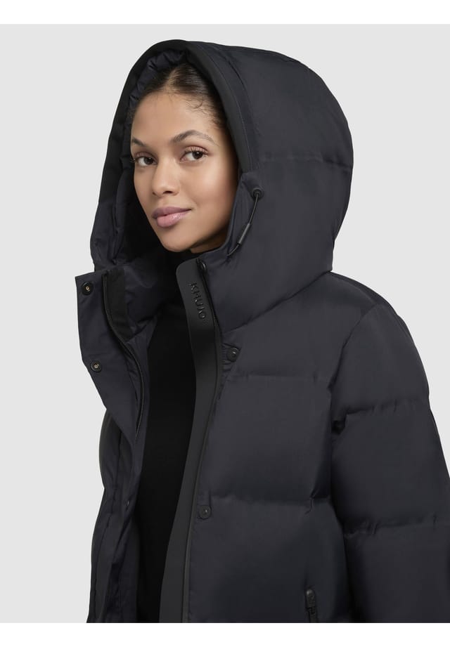 Описание товара: ВНЕШНИЙ ВИД: Чистый, вневременной дизайн этого стеганого зимнего пальто сочетает в себе элегантность и функциональность. Обширная простежка придает пальто структуру и объем — идеально для стильных образов в холодные дни. МАТЕРИАЛ: Изготовленный из прочного, водоотталкивающего и ветронепроницаемого материала, этот пуховик надежно защищает от непогоды. Гладкий и мягкий внутренний материал обеспечивает приятный комфорт при ношении, а водонепроницаемые молнии защищают от влаги — идеально подходит для зимних приключений на свежем воздухе. ПОСАДКА: Слегка приталенный крой подчеркивает женственный силуэт и достигает середины икры. Боковые разрезы с молниями (прогулочные разрезы) обеспечивают свободу движений и индивидуальную подгонку. ДЕТАЛИ: Зимнее пальто имеет практичные карманы для рук с водонепроницаемыми молниями, карман на рукаве и внутренний карман. Большой регулируемый капюшон с кулиской и высоко застегивающийся воротник на подкладке обеспечивают дополнительную защиту от ветра, а двухсторонняя молния открывает универсальные возможности для стиля. Это женское пальто — идеальный компаньон для холодных зимних дней, предлагая надежную защиту и современный стиль одновременно. Его функциональные детали делают его идеальным для повседневной носки и активного отдыха в непогоду. Современное женское зимнее стеганое пальто от khujo Регулируемый, теплый капюшон с подкладкой и шнурками-завязками Водоотталкивающий и ветрозащитный материал с тяжелой простежкой Мягкая, гладкая внутренняя подкладка Двусторонняя молния спереди, скрытая с помощью магнитной планки Рукава с эластичными манжетами 2 больших кармана с водонепроницаемыми молниями 1 внутренний карман 1 карман на рукаве (слева) 2 боковых разреза Высокий воротник на подкладке защищает от ветра и холода Ручная стирка