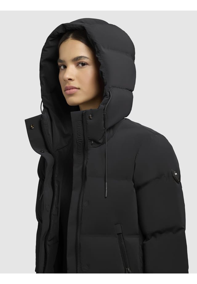 Описание товара: ВНЕШНИЙ ВИД: Это стеганое пальто впечатляет своим чистым, минималистичным видом и просторными стегаными отделениями. Длинный покрой и большие внешние карманы придают ему современный и городской вид, идеальный для повседневной носки зимой. МАТЕРИАЛ: Пуховик изготовлен из прочного, гладкого внешнего материала, который является как ветро-, так и водонепроницаемым. Мягкая внутренняя подкладка обеспечивает высокий уровень комфорта и приятно согревает даже в особенно холодные дни. ПОСАДКА: Благодаря слегка приталенному крою и длине выше колена пальто подчеркивает фигуру, не стесняя ее. Завязки на подоле и капюшоне, двухсторонняя молния спереди и очень большие боковые карманы позволяют индивидуально регулировать размер. ДЕТАЛИ: Практичные особенности, такие как большие внешние карманы с двухсторонними молниями, дополнительный карман на рукаве и внутренний карман, делают пальто особенно функциональным. Просторный, теплый капюшон с подкладкой и высокий воротник обеспечивают дополнительную защиту от холода и ветра. Это зимнее пальто идеально подходит для холодных дней в городе. Благодаря своим погодоустойчивым свойствам и практичным деталям оно идеально подходит для прохладной, влажной погоды, предлагая при этом современный стиль. Современное женское зимнее стеганое пальто от khujo С большим, теплым капюшоном (регулируется шнурком) Водо- и ветронепроницаемый внешний материал Мягкая, согревающая внутренняя подкладка Скрытая двухсторонняя молния спереди с магнитной планкой на кнопках Эластичные манжеты на рукавах 2 очень больших боковых кармана с индивидуально регулируемой двухсторонней молнией 1 внутренний карман 1 карман на рукаве Высокий воротник обеспечивает идеальную защиту от ветра и холода Машинная стирка при температуре 30 °C