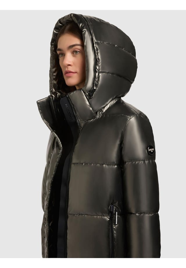 Описание товара: ВНЕШНИЙ ВИД: Это женское зимнее стеганое пальто впечатляет своим минималистичным, спортивно-элегантным видом. Чистый силуэт и блестящая, слегка прорезиненная поверхность создают современный вид, который идеально подходит для повседневных и зимних нарядов. МАТЕРИАЛ: Прочная и долговечная поверхность пальто водонепроницаема и ветрозащитна. Благодаря специальному покрытию капли воды просто скатываются, обеспечивая оптимальную защиту в суровых погодных условиях. Гладкая внутренняя подкладка обеспечивает приятное тепло и комфорт. ПОСАДКА: Уличное пальто имеет прямой крой, доходящий до середины бедра, и гарантирует свободу движений. Завязки на съемном капюшоне позволяют индивидуально регулировать размер и обеспечивают дополнительную защиту от ветра и холода. ДЕТАЛИ: Практичные особенности включают в себя внешние карманы на молнии с флисовой подкладкой и внутренний карман. Высокий воротник с застежкой на липучке, клапан на магнитных кнопках и бархатистые манжеты обеспечивают оптимальную защиту и комфорт. Это женское пальто идеально подходит для холодных зимних дней в городе или на природе. Устойчивость к атмосферным воздействиям и утепляющие материалы делают его надежным спутником в ветреную и непогоду. Блестящее женское зимнее стеганое пальто Прямой крой до середины бедра Капюшон со съемной молнией и регулируемым шнурком Высокий воротник с застежкой на липучке Карманы на молнии снаружи и внутри Магнитная застежка-кнопка Двусторонняя молния Ручная стирка