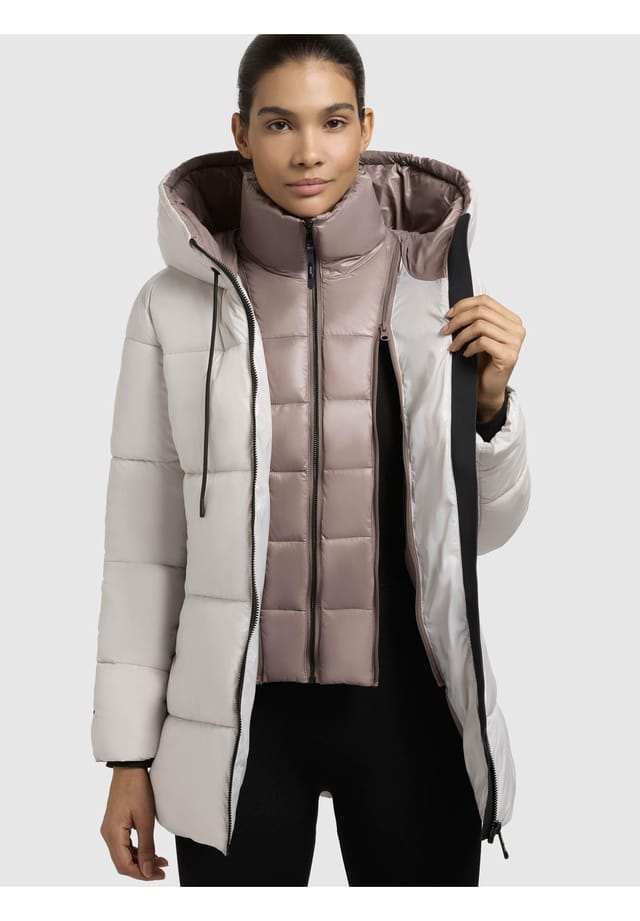 Описание товара: ВНЕШНИЙ ВИД: Современная стеганая куртка с изысканной отделкой и чистыми линиями, которая впечатляет своим минималистичным внешним видом. Универсальная зимняя одежда, ее чистая структура позволяет легко интегрировать ее в городские и спортивные наряды, а благодаря двойному ветрозащитному клапану она действительно привлекает внимание. МАТЕРИАЛ: Благодаря своим водоотталкивающим и ветрозащитным свойствам куртка с капюшоном обеспечивает оптимальную защиту от неблагоприятных погодных условий. Мягкий и гладкий материал обеспечивает приятный комфорт при ношении, а его водоотталкивающие свойства также впечатляют своими водоотталкивающими свойствами. ПОСАДКА: Облегающая и слегка приталенная, женская куртка обеспечивает удобную посадку. Она доходит до низа и, таким образом, обеспечивает оптимальную защиту от холода, а регулируемый капюшон позволяет индивидуально регулировать размер. ДЕТАЛИ: Воротник и внутренний ветрозащитный клапан легко снимаются с помощью молнии, что обеспечивает различные варианты ношения. Снаружи имеются карманы на молнии с флисовой подкладкой и дополнительный карман на молнии внутри, предлагая достаточно места для хранения важных вещей. Это практичное короткое пальто станет идеальным компаньоном для холодного времени года. Благодаря регулируемому дизайну и утепленным карманам оно идеально подходит для зимы и сочетает в себе функциональность и модный стиль. Модное женское короткое пальто для зимы. Облегающий крой, который закрывает низ. Водо- и ветронепроницаемый материал. Капюшон регулируется шнурками. Отстегивающийся воротник и клапан на молнии. Мягкие бархатистые манжеты. 2 кармана на молнии с подкладкой снаружи. 1 карман на молнии внутри. Ручная стирка.