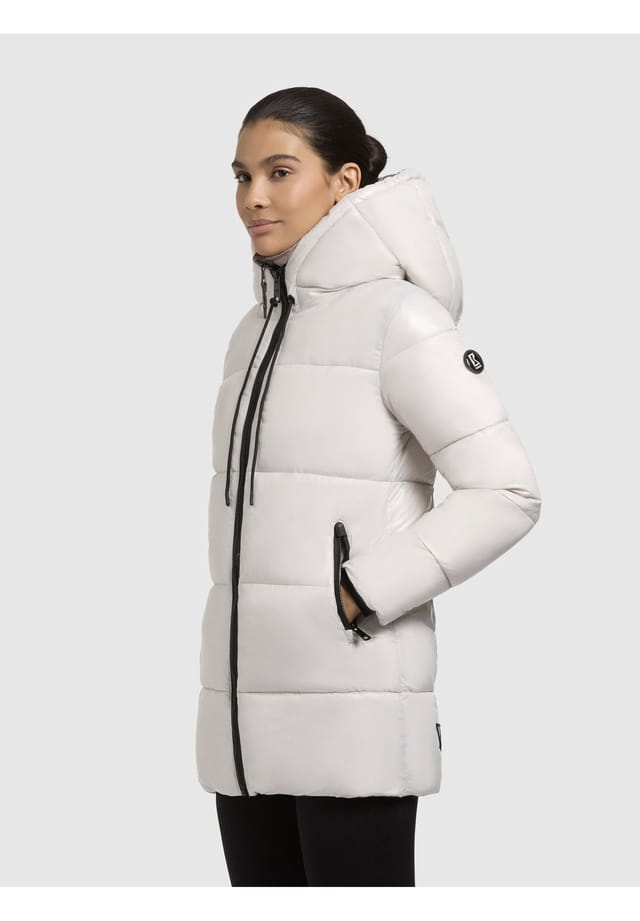 Стеганое женское короткое пальто с регулируемым капюшоном.