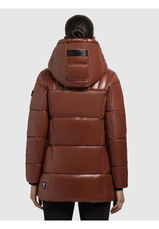 Стеганое женское короткое пальто с регулируемым капюшоном.