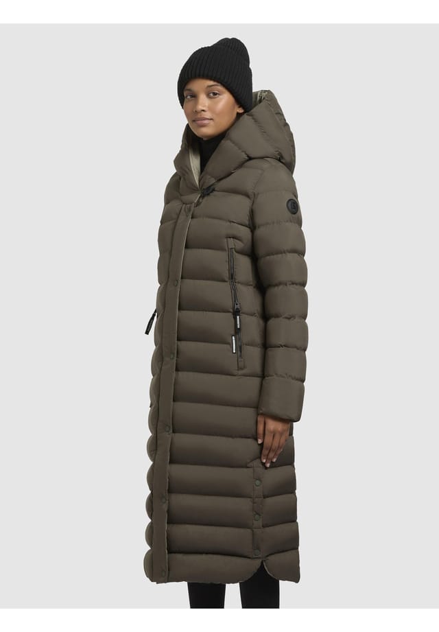Описание товара: ВНЕШНИЙ ВИД: Удлиненное, сшитое на заказ стеганое пальто, которое благодаря высококачественному утепленному капюшону и объемному воротнику не только прекрасно согревает, но и создает особый зимний образ. - Идеально подходит для особенно холодных осенних и зимних дней. МАТЕРИАЛ: Нескользящий, матовый внешний материал водоотталкивающий и ветронепроницаемый, обеспечивая идеальную защиту от изменчивой погоды. Шелковисто-гладкая внутренняя подкладка приглашает вас прижаться, а толстая подкладка сохраняет тепло и уют. ПОСАДКА: Приталенный крой и удлиненная длина, достигающая середины икры, не только обеспечивают защиту от холода, но и создают облегающий силуэт. Боковые разрезы с магнитными кнопками обеспечивают достаточную свободу движений, несмотря на длину. ДЕТАЛИ: Эта длинная зимняя куртка имеет два больших боковых кармана с двухсторонними молниями. Объемный, мягкий воротник, который плавно переходит в капюшон, завершает дизайн и также является прекрасной альтернативой толстому шарфу, сохраняя шею, затылок и голову в тепле. Пальто обеспечивает оптимальную защиту в холодную погоду и сочетает в себе стильные детали с высокой функциональностью. Его длина сохраняет тепло, а водо- и ветроустойчивый материал обеспечивает идеальную защиту от непогоды. Современная женская зимняя стеганая куртка от модного уличного бренда khujo С капюшоном и большим искусственным мехом (съемным с помощью кнопок) Водоотталкивающий матовый наружный материал Мягкая внутренняя подкладка с модной клетчатой стежкой Высококачественная потайная молния спереди с планкой на пуговицах Боковые пояса позволяют идеально отрегулировать талию Ребристые манжеты Машинная стирка при 30 °C