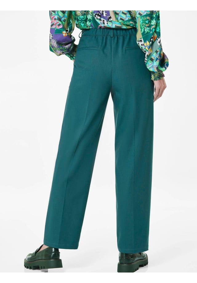 Описание товара: Брюки с элегантным поясом и заутюженными складками для стильного вида. Изготовлены из мягкой, струящейся смеси вискозы и эластана, они особенно удобны в носке. Пояс гладкий спереди и эластичный сзади для идеальной посадки. Они легко застегиваются на крючок, пуговицу и молнию. Два практичных боковых кармана и два ложных прорезных кармана сзади завершают изысканный вид. Универсальный фаворит как для повседневной носки, так и для особых случаев! Ширина подола около 45 см. Широкая ширина штанины.