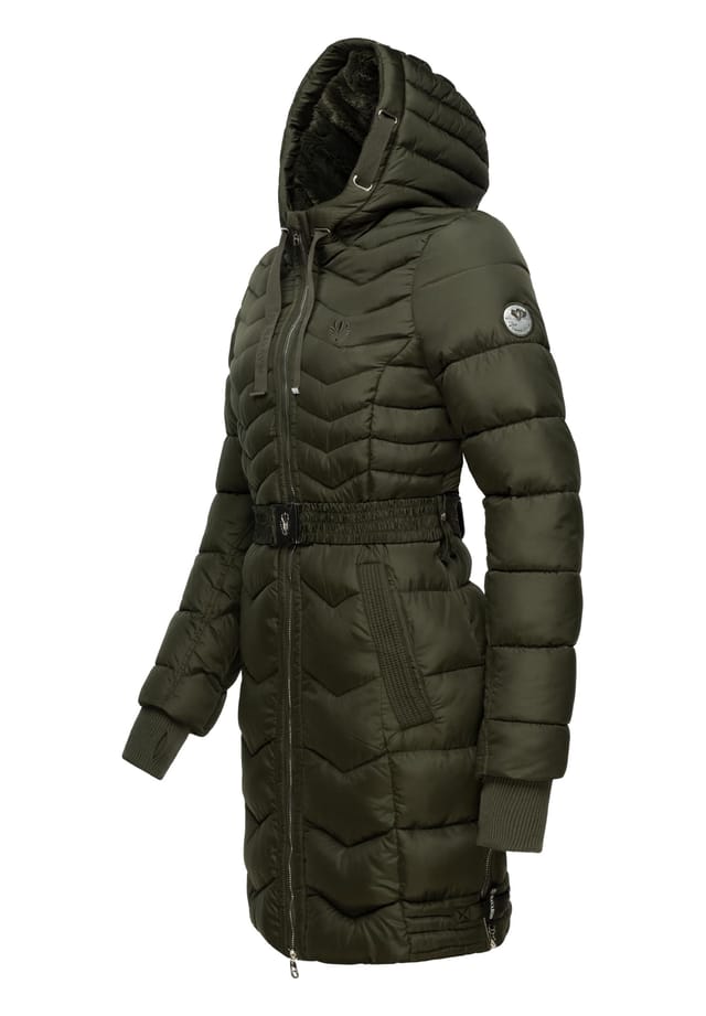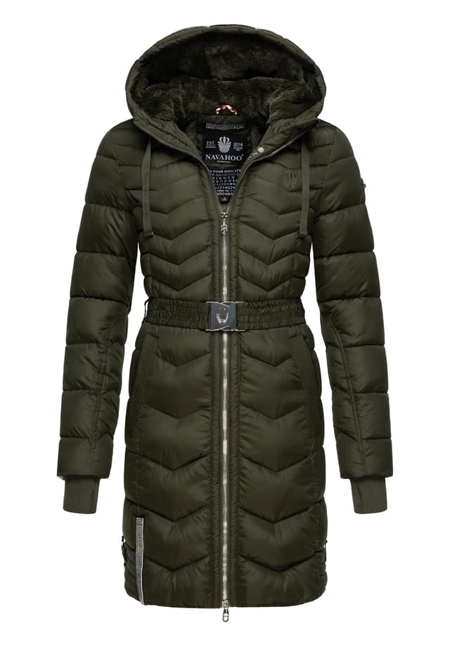 Описание товара: ВНЕШНИЙ ВИД: Теплая женская зимняя парка со стильной зигзагообразной стежкой, множеством металлических блестящих деталей и поясом на талии — идеальный компаньон в холодное время года (осень и зиму)! МАТЕРИАЛ: Пальто из элегантного, матово-мерцающего внешнего материала, внутренняя подкладка наполовину из приятной гладкой ткани, верхняя половина заходит на капюшон и сделана из пушистого искусственного меха ПОСАДКА: Узкая простежка куртки для отдыха на открытом воздухе, прекрасно сшитый крой и идеальная длина примерно до середины бедра создают образ прекрасной фигуры, которая дополнительно подчеркивается поясом на талии ДЕТАЛИ: Боковые разрезы обеспечивают большую свободу движений, а подкладочные карманы, а также ребристые манжеты с отверстиями для больших пальцев сохраняют тепло, короткое пальто впечатляет визуальными деталями, такими как вышивка и блестящие металлические аппликации Теплая зимняя куртка с подкладкой не только визуально притягивает взгляд, но и впечатляет большим вниманием к деталям и функциональностью - обязательная стеганая куртка, без которой не должен быть ни один гардероб! Стеганое женское пальто с подкладочным капюшоном от Navahoo. Приталенный крой и отличная длина примерно до середины бедра. Капюшон регулируется по ширине с помощью завязок. Супермягкий, матовый мерцающий внешний материал. Половина внутренней подкладки гладкая, верхняя половина до капюшона выполнена из искусственного меха. Контрастная окантовка внутри. Высоко закрывающаяся молния защищает от ветра и холода. 2 боковых кармана на кнопке. 1 внутренний карман на липучке. 1 специальный двухкомпонентный внутренний карман для беспроводных наушников и зарядного устройства. Внутренние эластичные ребристые манжеты с отверстиями для больших пальцев. Многочисленные металлические блестящие детали. Машинная стирка при 30 °C. Особые характеристики : Внешний материал: 100% полиэстер, подкладка: 100% полиэстер, наполнитель: 100% полиэстер, подкладка рукавов: 100% полиэстер. Стильная женская зимняя парка с многочисленными деталями. Элегантный и матовый мерцающий внешний материал, подкладка из искусственного меха. Приталенный крой и отличная длина примерно до середины бедра. Боковые разрезы и ребристые манжеты с отверстиями для больших пальцев
