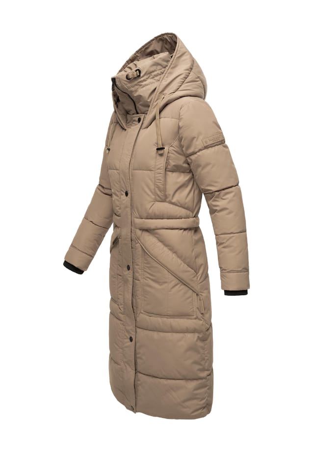 Описание товара: ВНЕШНИЙ ВИД: Модное женское пуховое пальто с практичными деталями, высоким воротником и большим капюшоном от Marikoo — идеально подходит для холодных дней осенью и зимой! МАТЕРИАЛ: Длинная, теплая зимняя куртка с водо- и ветронепроницаемым материалом; гладкая, бархатистая подкладка пальто делает его чрезвычайно удобным в носке ПОСАДКА: Слегка приталенное женское пальто создает красивый силуэт благодаря дополнительной внутренней кулиске на талии; высокий воротник и капюшон на подкладке (с удлинением спереди) можно индивидуально отрегулировать с помощью кулисок, обеспечивая идеальную защиту от ветра и непогоды ДЕТАЛИ: Мягкие ребристые манжеты сохранят вас в тепле; укороченная передняя молния не ограничивает свободу движений, несмотря на длину до колена, а многочисленные внешние и внутренние карманы вмещают все ваши ценные вещи Это широкое стеганое элегантное стеганое пальто хорошо сочетается с любым нарядом и является обязательной вещью в любом шкафу — функциональность и стиль в одном! Теплое стеганое пальто с высоким воротником и большим капюшоном от Marikoo. Капюшон и воротник (оба на мягкой подкладке) можно индивидуально регулировать с помощью шнурков. Высоко застегивающаяся передняя молния (примерно до середины бедра) с защитной планкой на кнопках. Водо- и ветронепроницаемый наружный материал. Теплые ребристые манжеты на рукавах. Внутренняя кулиска на талии. Отворот и удлиненный капюшон спереди. 2 больших боковых кармана (с застежкой на кнопках). 2 нагрудных кармана с флисовой подкладкой (с застежкой на кнопках). 4 внутренних кармана (застежка на липучке, разделенный сетчатый карман, молния с отверстием для кабеля наушников). Машинная стирка при 30 °C. Особенности : Внешний материал: 100% полиэстер, подкладка: 100% полиэстер, наполнитель: 100% полиэстер, подкладка рукавов: 100% полиэстер. Женское зимнее стеганое пальто с высоким воротником и капюшоном. Мягкий и водоотталкивающий наружный материал, теплая подкладка. Длина топа до колен, внутренняя завязка на талии. Карманы на подкладке для защиты рук от холода, высокий воротник