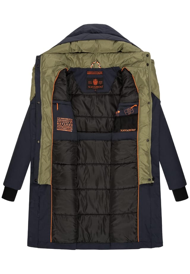 Описание товара: ОБРАЗ: Стильное женское зимнее пальто с контрастными элементами, высоким воротником и большим капюшоном на подкладке от бренда Navahoo — идеальный спутник в холодные дни осени и зимы! МАТЕРИАЛ: Нескользящий, водо- и ветроустойчивый наружный материал, бархатистая мерцающая внутренняя подкладка парки и мягкие ребристые манжеты на концах рукавов защищают от ветра и непогоды ПОКРЫТИЕ: Прямой покрой, длинная зимняя куртка длиной до колен, внутренняя кулиска на талии позволяет индивидуально регулировать посадку, поэтому отлично сочетается с любым стилем ДЕТАЛИ: Многочисленные внутренние и внешние карманы сохранят ваши руки в тепле и обеспечат достаточно места для хранения всех ваших ценных вещей, внутренняя молния с защитой на кнопках и внешняя двухсторонняя молния с магнитным клапаном отталкивают ветер Это современное женское пальто сочетает в себе все практические функции уличной куртки с современным стилем и прекрасно сочетается с любыми нарядами — настоящая приманка для глаз в холодное время года Женское зимнее пальто Navahoo Большой подкладочный капюшон и высокий воротник Укороченная передняя молния с накладной двухсторонней молнией Двойная защитная планка (кнопки и магнитная застежка) Плотные ребристые манжеты на концах рукавов обеспечивают идеальная защита от ветра и холодного воздуха. Длина примерно до колен. 2 боковых внешних кармана с застежками-кнопками. Внутренний шнурок на талии. 2 внутренних кармана на молнии (с канавкой для кабеля для наушников). 2 разделенных сетчатых внутренних кармана. Машинная стирка при 30°C. Особенности : Внешний материал: 45% хлопок, 55% нейлон, подкладка: 100% полиэстер, наполнитель: 100% полиэстер, подкладка рукавов: 100% полиэстер. Изделие содержит магниты. Зимнее короткое пальто с большим капюшоном на подкладке. Водо- и ветроотталкивающий внешний материал, плотные ребристые манжеты. Прямой покрой, шнурок на талии, длина примерно до колен. Укороченная внутренняя молния, двухсторонняя молния. Современное, практичное женское короткое пальто для холодных дней. Стиль: повседневный. Длина рукава: длинные рукава. Обозначение длины для топов: удлиненный. Информация о безопасности производителя: Изделие содержит магниты. Если у вас установлен кардиостимулятор или дефибриллятор, обратитесь к врачу.