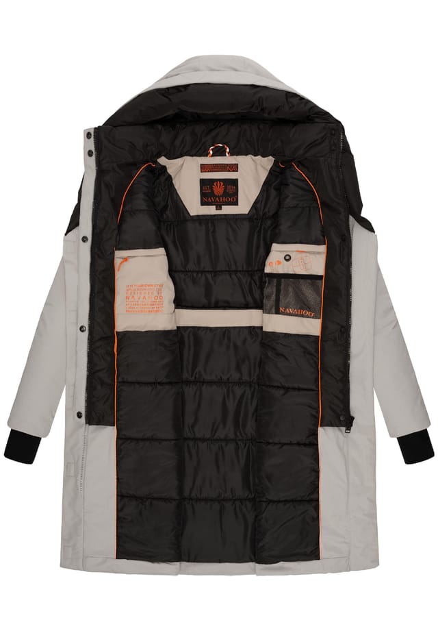 Описание товара: ОБРАЗ: Стильное женское зимнее пальто с контрастными элементами, высоким воротником и большим капюшоном на подкладке от бренда Navahoo — идеальный спутник в холодные дни осени и зимы! МАТЕРИАЛ: Нескользящий, водо- и ветроустойчивый наружный материал, бархатистая мерцающая внутренняя подкладка парки и мягкие ребристые манжеты на концах рукавов защищают от ветра и непогоды ПОКРЫТИЕ: Прямой покрой, длинная зимняя куртка длиной до колен, внутренняя кулиска на талии позволяет индивидуально регулировать посадку, поэтому отлично сочетается с любым стилем ДЕТАЛИ: Многочисленные внутренние и внешние карманы сохранят ваши руки в тепле и обеспечат достаточно места для хранения всех ваших ценных вещей, внутренняя молния с защитой на кнопках и внешняя двухсторонняя молния с магнитным клапаном отталкивают ветер Это современное женское пальто сочетает в себе все практические функции уличной куртки с современным стилем и прекрасно сочетается с любыми нарядами — настоящая приманка для глаз в холодное время года Женское зимнее пальто Navahoo Большой подкладочный капюшон и высокий воротник Укороченная передняя молния с накладной двухсторонней молнией Двойная защитная планка (кнопки и магнитная застежка) Плотные ребристые манжеты на концах рукавов обеспечивают идеальная защита от ветра и холодного воздуха. Длина примерно до колен. 2 боковых внешних кармана с застежками-кнопками. Внутренний шнурок на талии. 2 внутренних кармана на молнии (с канавкой для кабеля для наушников). 2 разделенных сетчатых внутренних кармана. Машинная стирка при 30°C. Особенности : Внешний материал: 45% хлопок, 55% нейлон, подкладка: 100% полиэстер, наполнитель: 100% полиэстер, подкладка рукавов: 100% полиэстер. Изделие содержит магниты. Зимнее короткое пальто с большим капюшоном на подкладке. Водо- и ветроотталкивающий внешний материал, плотные ребристые манжеты. Прямой покрой, шнурок на талии, длина примерно до колен. Укороченная внутренняя молния, двухсторонняя молния. Современное, практичное женское короткое пальто для холодных дней. Стиль: повседневный. Длина рукава: длинные рукава. Обозначение длины для топов: удлиненный. Информация о безопасности производителя: Изделие содержит магниты. Если у вас установлен кардиостимулятор или дефибриллятор, обратитесь к врачу.