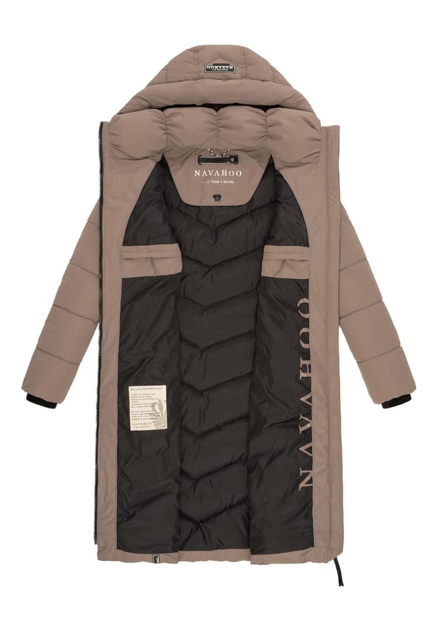 Описание товара: ВНЕШНИЙ ВИД: Элегантное женское пуховое пальто с модной V-образной простежкой, большими завязками на капюшоне и особенно теплым и мягким воротником с высокой застежкой - идеальный компаньон для холодных дней осенью и зимой! МАТЕРИАЛ: Шикарное пальто из матового, мерцающего и водоотталкивающего внешнего материала, внутренняя подкладка приятно шелковистая и поэтому очень удобная в носке ПОСАДКА: Зимняя куртка с толстой подкладкой имеет большую длину до колена и, таким образом, прекрасно сохраняет тепло даже в морозную погоду. Она имеет слегка приталенный крой и имеет прорези для ходьбы сзади, а также двухстороннюю молнию, которая обеспечивает достаточную свободу движений. ДЕТАЛИ: Внешние карманы на кнопках с подкладкой не только прекрасно согревают замерзшие руки, но и поражают своей изысканностью, поскольку в них есть скрытые карманы на молнии, в которых можно безопасно хранить важные ценные вещи. Большой капюшон регулируется по ширине с помощью привлекающих внимание завязок, а также может быть снят при необходимости. Теплое стеганое зимнее пальто с высоким воротником на толстой подкладке, который делает любой шарф излишним, не только визуально выделяется, но и идеально подходит для обморожений и отныне не должно отсутствовать в любом гардеробе! Современное женское зимнее стеганое пальто от Navahoo Слегка приталенный крой Длина до колен Достаточная свобода движений благодаря прорезям для ходьбы Супермягкий, матовый мерцающий внешний материал (водоотталкивающий) Высокий воротник с защитой подбородка Съемный, регулируемый капюшон 2 боковых кармана на кнопках снаружи 2 потайных боковых кармана на молнии 2 внутренних кармана на молнии Машинная стирка при 30 °C