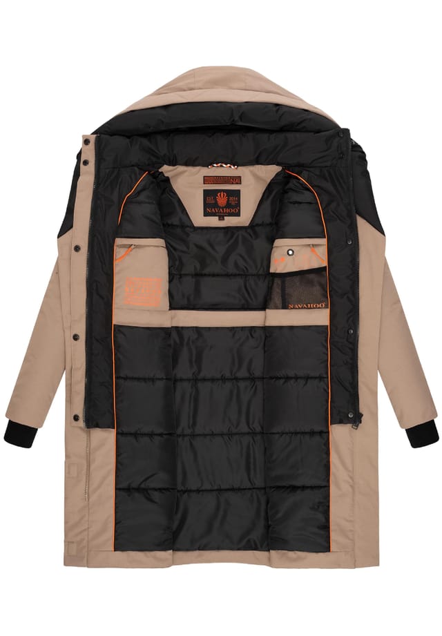Описание товара: ОБРАЗ: Стильное женское зимнее пальто с контрастными элементами, высоким воротником и большим капюшоном на подкладке от бренда Navahoo — идеальный спутник в холодные дни осени и зимы! МАТЕРИАЛ: Нескользящий, водо- и ветроустойчивый наружный материал, бархатистая мерцающая внутренняя подкладка парки и мягкие ребристые манжеты на концах рукавов защищают от ветра и непогоды ПОКРЫТИЕ: Прямой покрой, длинная зимняя куртка длиной до колен, внутренняя кулиска на талии позволяет индивидуально регулировать посадку, поэтому отлично сочетается с любым стилем ДЕТАЛИ: Многочисленные внутренние и внешние карманы сохранят ваши руки в тепле и обеспечат достаточно места для хранения всех ваших ценных вещей, внутренняя молния с защитой на кнопках и внешняя двухсторонняя молния с магнитным клапаном отталкивают ветер Это современное женское пальто сочетает в себе все практические функции уличной куртки с современным стилем и прекрасно сочетается с любыми нарядами — настоящая приманка для глаз в холодное время года Женское зимнее пальто Navahoo Большой подкладочный капюшон и высокий воротник Укороченная передняя молния с накладной двухсторонней молнией Двойная защитная планка (кнопки и магнитная застежка) Плотные ребристые манжеты на концах рукавов обеспечивают идеальная защита от ветра и холодного воздуха. Длина примерно до колен. 2 боковых внешних кармана с застежками-кнопками. Внутренний шнурок на талии. 2 внутренних кармана на молнии (с канавкой для кабеля для наушников). 2 разделенных сетчатых внутренних кармана. Машинная стирка при 30°C. Особенности : Внешний материал: 45% хлопок, 55% нейлон, подкладка: 100% полиэстер, наполнитель: 100% полиэстер, подкладка рукавов: 100% полиэстер. Изделие содержит магниты. Зимнее короткое пальто с большим капюшоном на подкладке. Водо- и ветроотталкивающий внешний материал, плотные ребристые манжеты. Прямой покрой, шнурок на талии, длина примерно до колен. Укороченная внутренняя молния, двухсторонняя молния. Современное, практичное женское короткое пальто для холодных дней. Стиль: повседневный. Длина рукава: длинные рукава. Обозначение длины для топов: удлиненный. Информация о безопасности производителя: Изделие содержит магниты. Если у вас установлен кардиостимулятор или дефибриллятор, обратитесь к врачу.