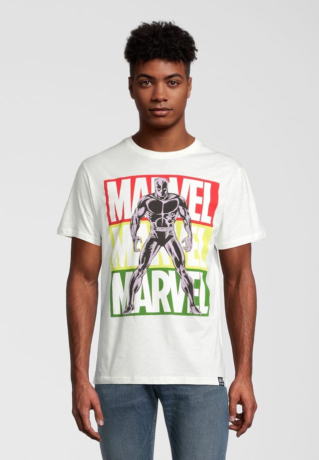 Футболка marvel черная пантера с крутым принтом marvel Re:Covered, экрю