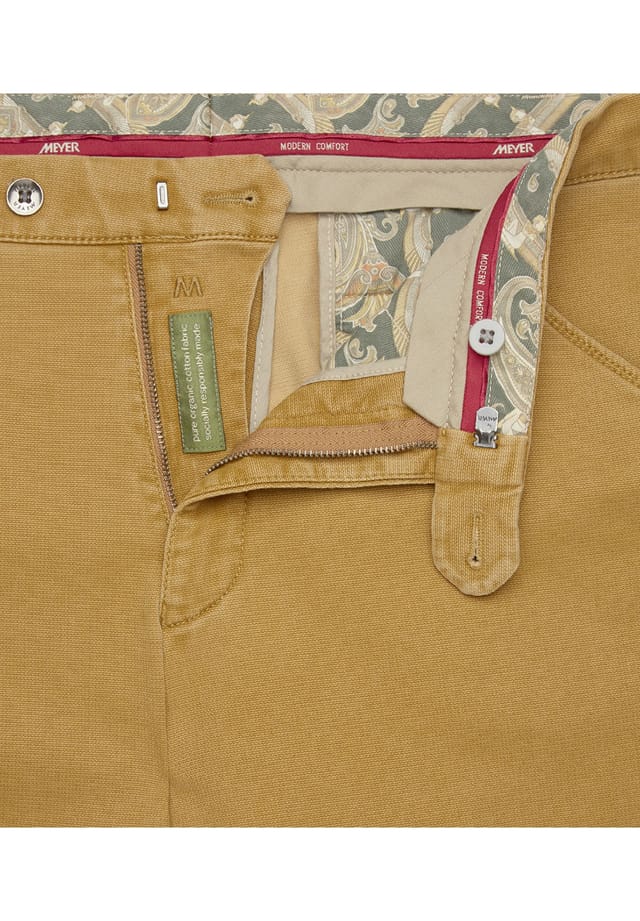 Описание товара: Этот повседневный стиль имеет диагональные боковые карманы, дополнительный карман для монет и два задних кармана на пуговицах. Они отделаны окантовкой в гармоничном цветовом узоре. Двойная микротекстура создает особый вид, а суперэластичное качество обеспечивает идеальный комфорт. Органический хлопок не только особенно удобен в носке, он также полезен для окружающей среды и всех работников, участвующих в прозрачном и социально ответственном производственном процессе в MEYER Hosen. Инструкции по уходу: не отбеливать, сушить в стиральной машине при низкой температуре, 40 °C в деликатном режиме. Особенности (Bullets): Современные брюки-чинос с диагональными карманами. Эластичный пояс для надежной и удобной посадки. Карман безопасности в левом кармане и дополнительный карман для монет. Европейское качество — сертифицировано Fairtrade. Номер товара 5568. Содержимое упаковки (шт.): 1. Застежка: молния. Свойства материала: простой в уходе, мягкий. Стиль: повседневный. Крой: прямой. Талия: средняя. Длина брюк: длинные брюки.