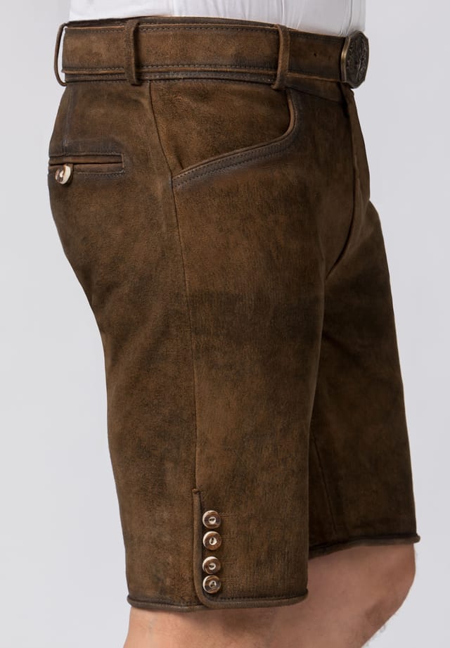 Описание товара: Традиционные кожаные брюки Fred от Stockerpoint Classics. Эти короткие кожаные брюки из высококачественной дубленой кожи дикого оленя с оленьим внешним видом характеризуются своей необычной структурой и идеально гармонируют с классическими роговыми пуговицами. Вместо нагрудника эти брюки имеют молнию. Вышивка была исключена, что характеризует этот сдержанный стиль. Брюки поставляются с ремнем и пряжкой с мотивом оленя из античной латуни. Они универсальны и могут прекрасно сочетаться со многими традиционными нарядами.