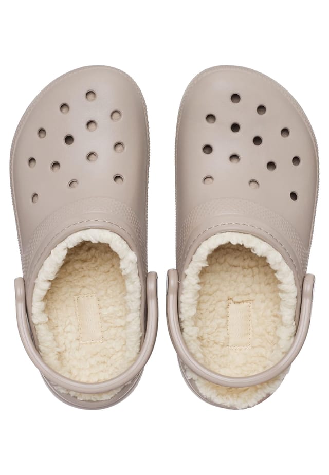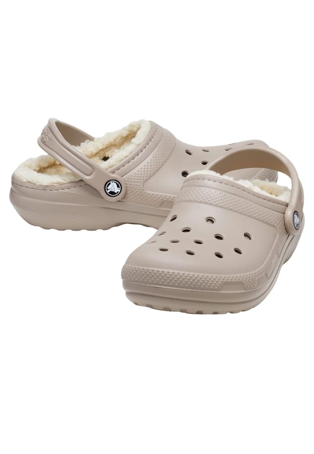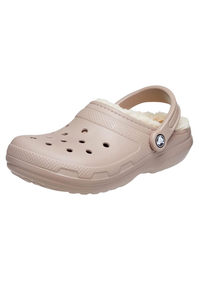 Сабо с пушистой подкладкой и ремешком на пятке Crocs, бежевый