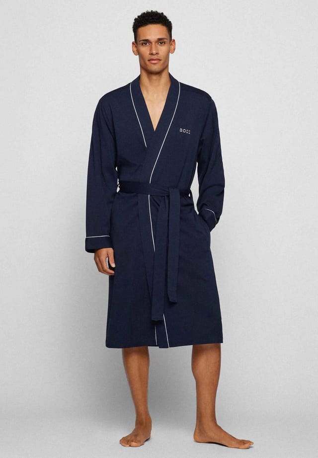 Описание товара: Простой мужской халат от бренда BOSS. Покрой кимоно с вышивкой логотипа на груди. Приятная мягкая хлопковая ткань.