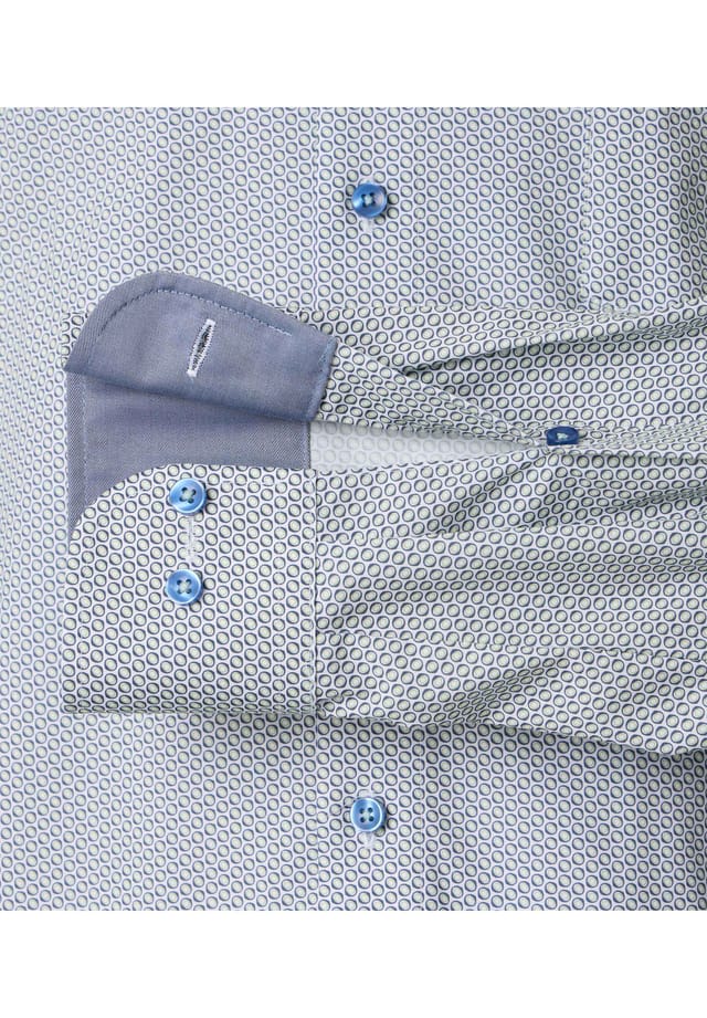 Описание товара: Эта деловая рубашка имеет облегающий крой и особенно подходит для мужчин, которые предпочитают более приталенный крой. Благодаря эластичной хлопковой конструкции она обеспечивает высокий уровень комфорта и свободу движений. Эта стильная модель имеет модный принт и станет идеальным компаньоном для мужчины, следящего за модой. Независимо от того, надета ли эта деловая рубашка с брюками или подобранными по цвету чиносами, она стильно дополнит любой образ.