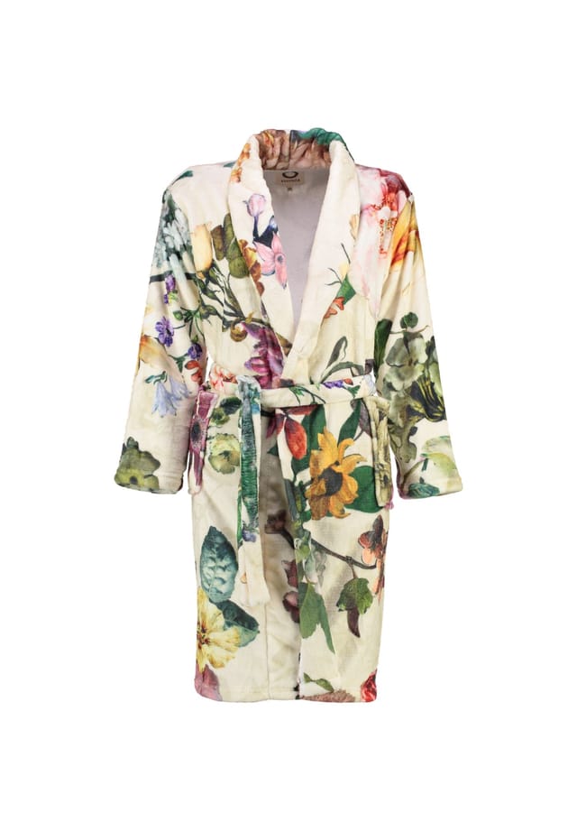 Халат Fleur с цветочным воротником-шалькой Essenza, экрю