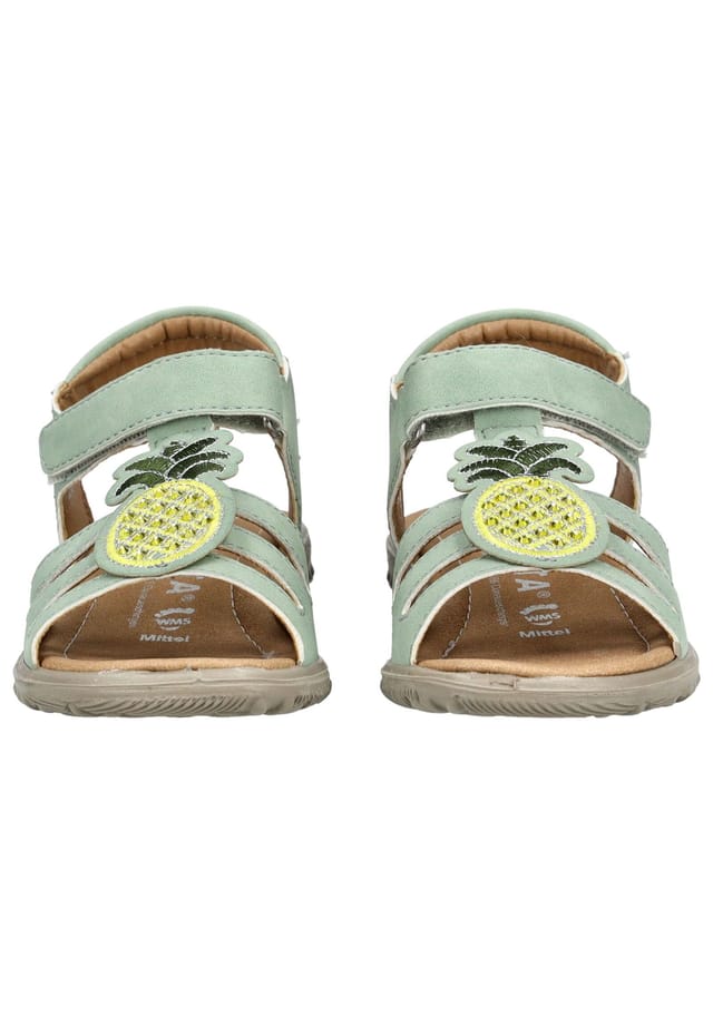 Описание товара: Быстро надеваются, быстро снимаются — с этими удобными и игривыми сандалиями от Ricosta с застежкой-липучкой и высококачественной синтетической кожей вы не ошибетесь, выбирая повседневную обувь для своего малыша. Эта очаровательная обувь с аппликацией в виде ананаса на центральной планке будет радовать его снова и снова, как никакая другая.