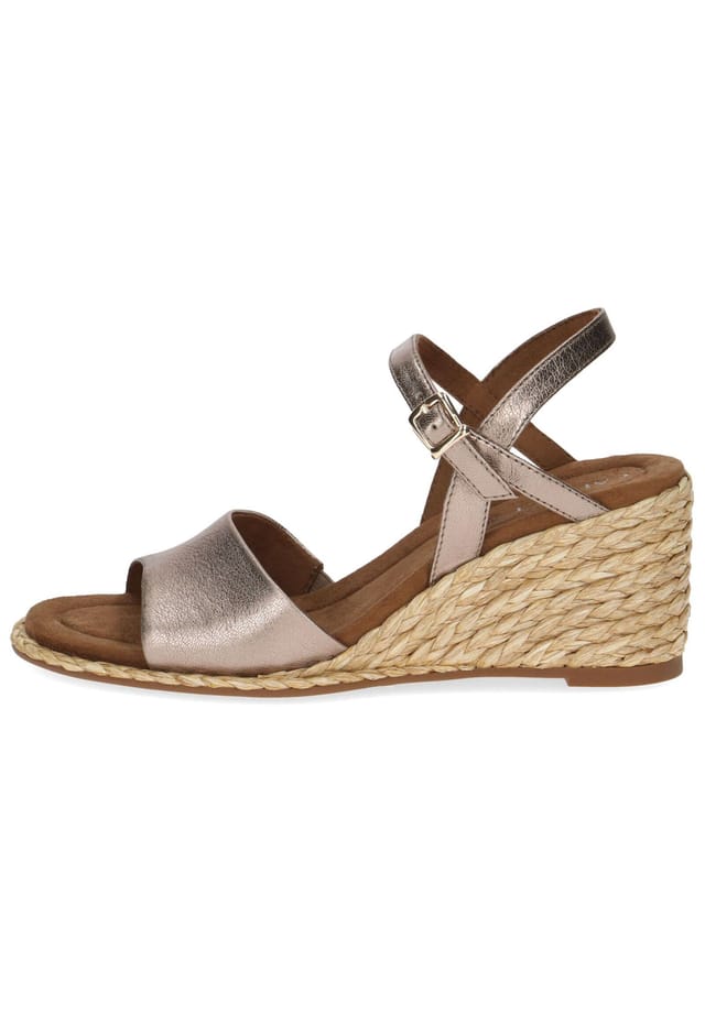 Описание товара: Эти босоножки Caprice с модным каблуком-танкеткой — это новый хит лета. Мягкая кожа с ремешком на щиколотке легко надевается и мягко обхватывает ногу. Благодаря текстильной стельке Memotion стелька эргономично адаптируется к форме стопы и обеспечивает дополнительную дозу хорошего самочувствия. С платьем, шортами или юбкой — вы не ошибетесь, надев эту модель.