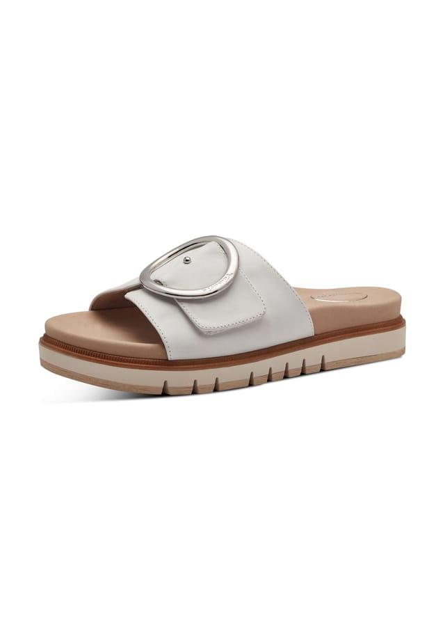 Описание товара: Нестареющие мюли, которые превратят ваши летние дни в настоящее удовольствие. Благодаря дышащей коже они прекрасно впитывают влагу. Современный ремешок с большой пряжкой делает образ по-настоящему привлекательным. В целом, прекрасная модель от Tamaris Comfort.