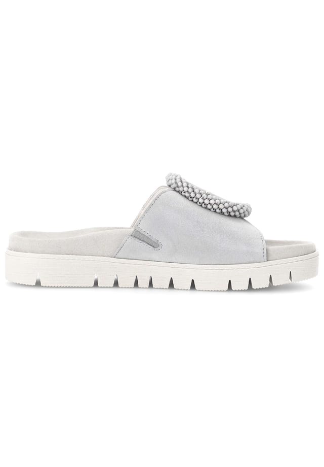 Описание товара: Эти стильные мюли от Gabor — модный повседневный спутник, выполненный из лучшей кожи. Декоративная жемчужная пряжка на мыске — настоящая приманка для глаз. Анатомическая стелька обеспечивает высокий уровень комфорта.