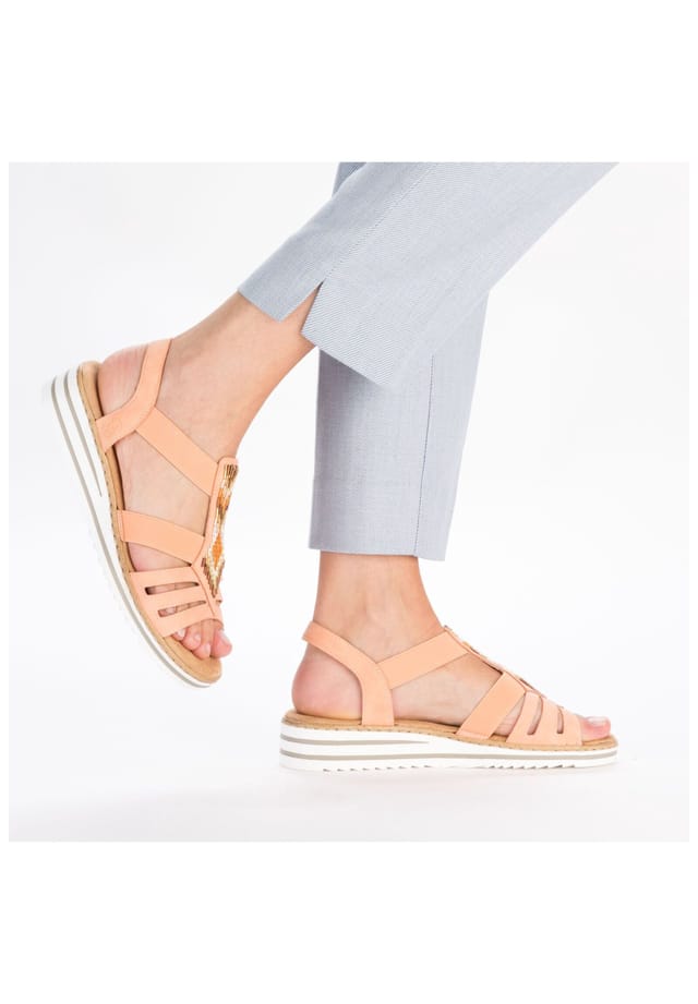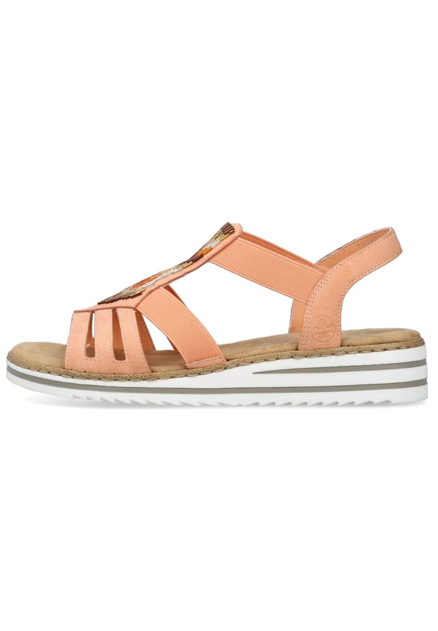 Описание товара: Эти удобные сандалии от Rieker — настоящая приманка для глаз, с красивыми жемчужными украшениями на центральной планке. Благодаря эластичным ремням модель можно быстро и легко надевать и снимать. Мягкая и влагорегулирующая текстильная стелька и клиновидная подошва на удобной высоте обеспечивают дополнительный комфорт.