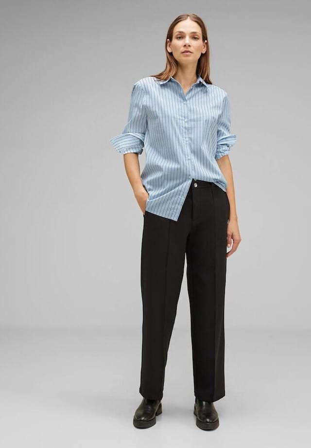 Описание товара: женская блузка Street One. Женская блузка Street One — это абсолютный must-have для модниц. Благодаря своему вневременному дизайну и высококачественному исполнению она станет идеальным дополнением к любому гардеробу. Высококачественные материалы: эта блузка изготовлена из 74% хлопка, 24% полиамида и 2% эластана. Материал не только удобен в носке, но также долговечен и прост в уходе. Он обеспечивает идеальную посадку и комфортную носку в течение всего дня. Универсальный стиль: женская блузка Street One впечатляет своим универсальным стилем. Будь то в офисе, на встрече с друзьями или для спокойного дня в городе, эта блузка всегда будет правильным выбором. Ее можно прекрасно сочетать с различными нарядами, и она добавит элегантности любому образу. Идеальная посадка: благодаря эластичному материалу и изысканному крою блузка идеально сидит. Она мягко облегает тело и стильно подчеркивает женственные изгибы. Простота ухода: женская блузка Street One проста в уходе. Ее можно стирать в стиральной машине, она сохраняет форму и цвет даже после нескольких стирок.