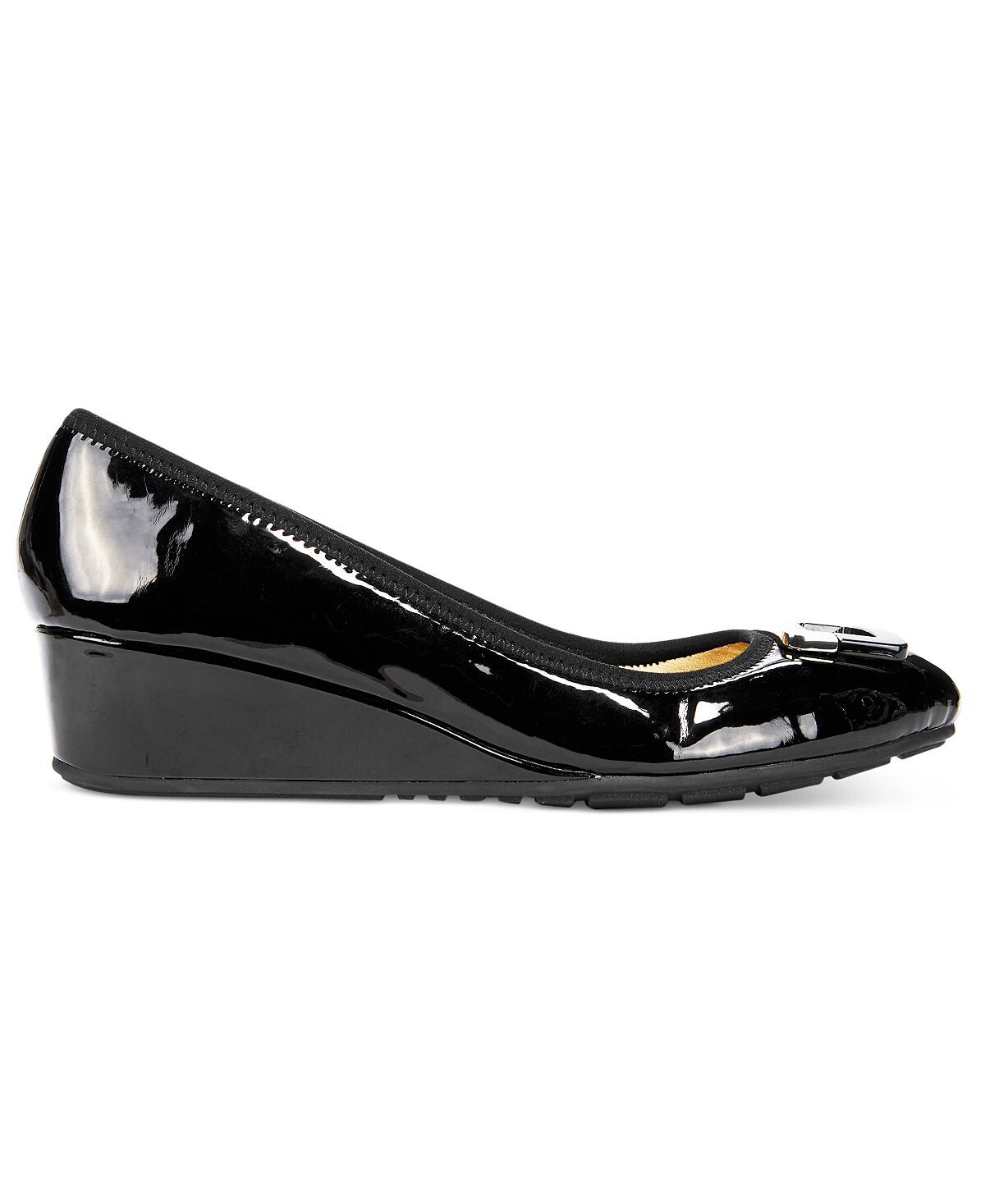Добавьте изысканности своему будничному образу с помощью современной металлической фурнитуры на танкетке Tad от Bandolino.